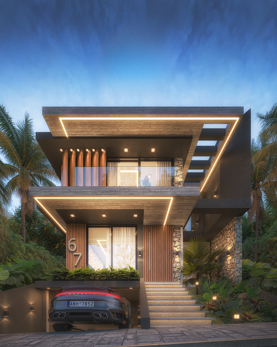 Com 368m² distribuídos em três pavimentos, a residência conta com living integrado, cozinha gourmet, 3 suítes (incluindo uma máster com closet e sacada), home office, elevador e garagem para 4 veículos. Cada ambiente foi pensado para oferecer iluminação natural, acabamentos nobres e integração total dos espaços.